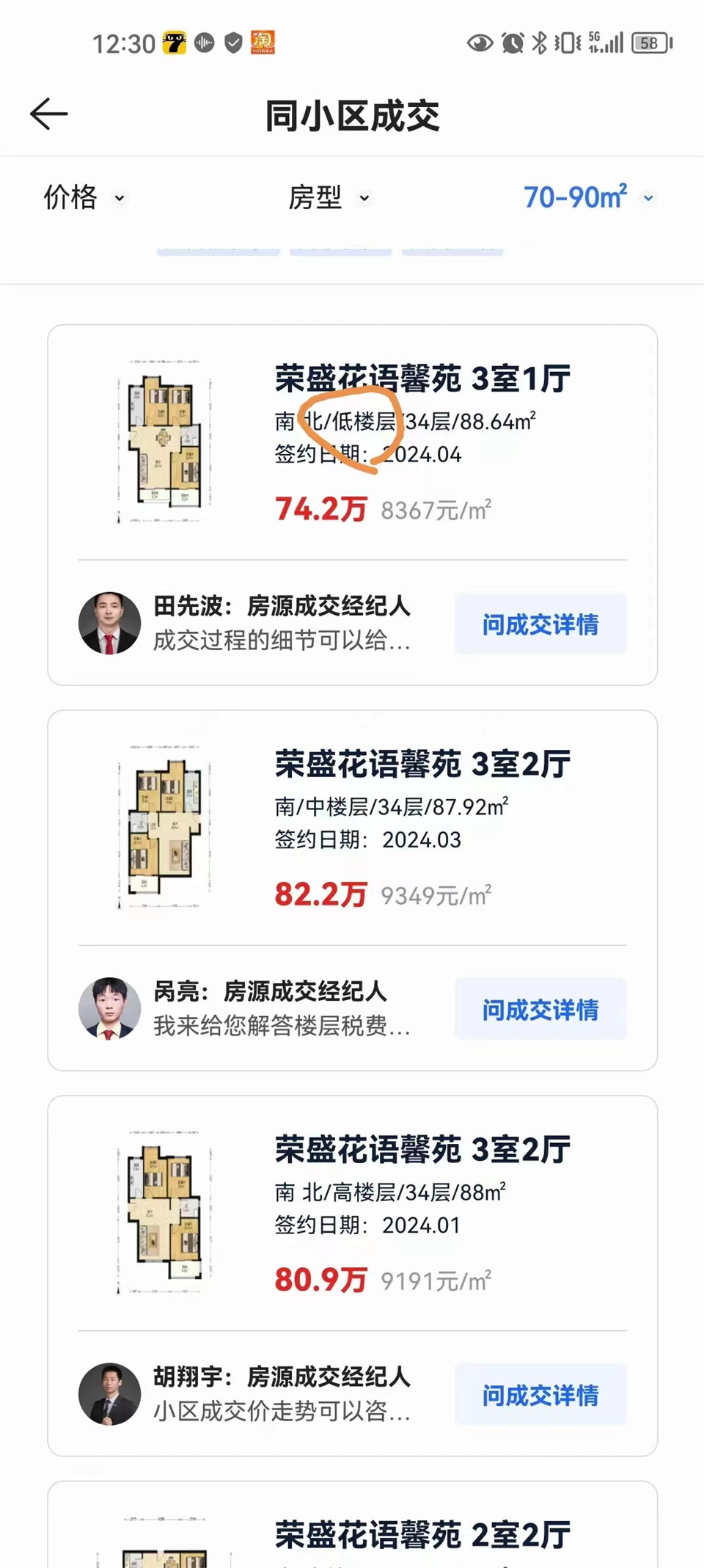 3月份跟我們簽約,這2個(gè)月參拍了6套房子(推薦過(guò)的更多,前面都沒(méi)緣分),今天緣分終于到了(哈哈哈哈,本來(lái)吳姐張哥預(yù)算50-60萬(wàn)買(mǎi)個(gè)兩房的,還有點(diǎn)不想拍這個(gè)房子的,我是一頓語(yǔ)音力勸撿漏拿下,最終決定競(jìng)拍),最后67萬(wàn)底價(jià)撿漏這套精裝三房。