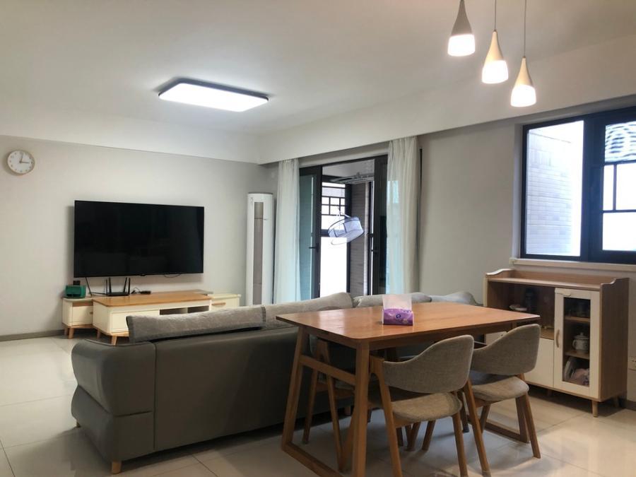 客廳:冰箱一臺(tái);餐桌一個(gè)+餐凳兩條;沙發(fā)一套;電視機(jī)一臺(tái)+電視柜一個(gè);餐邊柜一個(gè);茶幾一個(gè);立柜式空調(diào)一臺(tái)。